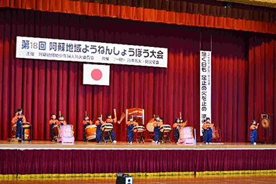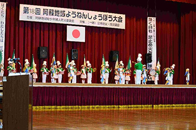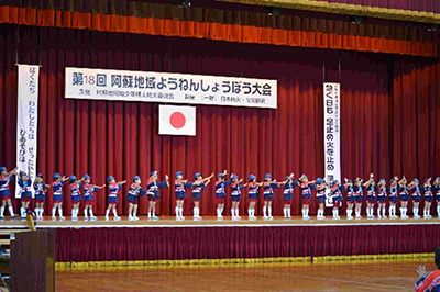 阿蘇地域幼少年婦人防火委員会は、(一財)日本防火・防災協会、阿蘇広域行政事務組合消防本部の共催のもと令和7年10月29日(水)、阿蘇市阿蘇体育館で幼年消防クラブ員を中心に420名が参加し「第18回阿蘇地域幼年消防大会」を開催しました。この大会は、感受性の強い幼児期に、楽しみながら火の取扱いに対する正しい知識を身につけてもらうと共に、各クラブの相互の交流を深めてもらうことを目的として2年に1度開催しているもので、今回で18回目を数える恒例のイベントです。