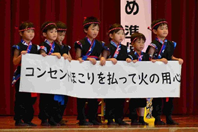 この大会は、もともと幼年消防クラブ員の健全育成を目的として始まったもので、その結果、近年、管内では子どもの火遊びが原因の火災は発生しておりません。これからも地域を巻き込んで防火意識の高揚に努めます。
