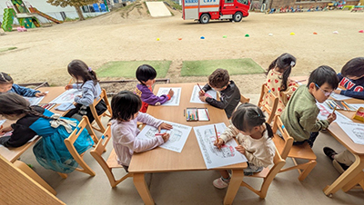 西尾市では秋季火災予防運動の一環として、市内15園・792名の幼年消防クラブ員を対象に、「みんなでかこう しょうぼうしゃ」と題したぬり絵会を(一財)日本防火・防災協会と共催で、令和7年10月14日(火)から令和7年12月12日(火)まで実施しました。
