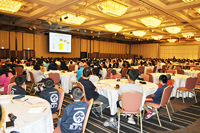 浦安市「シェラトン・グランデ・トーキョーベイ・ホテル」の「富士の間」に集合し、消防庁国民保護・防災部防災課地域防災室 田中昇治室長より開会の挨拶を述べた後、来賓の挨拶では 髙橋渡千葉県副知事、(公財)千葉県消防協会 小田山博史副会長より少年消防クラブに対する期待等について挨拶をいただきました。その後、地元チアダンスチームによる演技を鑑賞し、続いて各参加クラブから趣向を凝らしたクラブ活動紹介がありました。