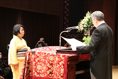 叙勲伝達式は、5月21日(水)東京・港区 ニッショーホールで行われ、冨樫博之 総務副大臣から晴れて勲記等の伝達を受けられました。