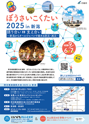 令和7年9月6日(土)から7日(日)までの2日間、朱鷺メッセ 新潟コンベンションセンターを会場に、内閣府は、防災に関するさまざまなノウハウや知識を楽しく“考え、体験する”イベント『ぼうさいこくたい2025』(防災推進国民大会、通称:ぼうさいこくたい)を、展示ブースとセッション形式で開催しました。