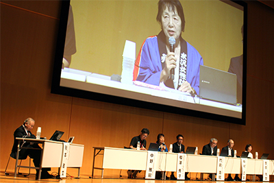 7日(日)に行った(公財)日本消防協会主催のセッションでは、「地域総合防災力の発揮」をテーマに、新潟県女性防火クラブ連絡協議会 会長 櫻澤 秀子の他 5名のパネリストを迎え、地域総合防災力の充実に取り組んでいる活動事例を発表いただき、有識者を交えた意見交換を行いました。