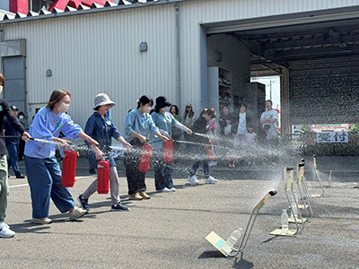 バケツリレーや煙体験、地震体験車、水消火器取扱いなど、いざという時に適切な行動をとれるよう訓練を実施しました。