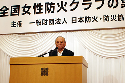 「女性防火クラブの皆様には、日頃から地域の安心・安全のため防火対策にお取り組みいただき、ありがとうございます。今年も日本各地で多くの災害が発生しております。皆様には住宅用火災警報器の普及啓発や、地域の防災訓練など、地域の防災力の向上に大きく貢献をしていただいております。多様化する災害に立ち向かうためには、地域の防災力をより一層充実することが重要です。総務省としても引き続き、女性防火クラブの活動を支援してまいります」と述べられました。