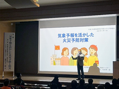 研修会では、秋田朝日放送の情報番組「トレタテ!」で気象キャスターを務める、気象予報士の和田幸一郎氏を講師に招き、「気象予報を活かした火災予防対策」をテーマにご講演いただきました。