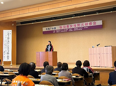 秋田県女性防火クラブ連絡協議会では、(一財)日本防火・防災協会との共催による「令和7年度秋田県女性防火研修会」を令和7年11月11日(火)に開催し、女性防火クラブ員をはじめとする全54名の参加がありました。