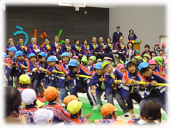 佐世保市消防局では、秋季火災予防運動の一環として平成19年11月9日(金)に佐世保市体育文化館において、市内の保育園や幼稚園28クラブ、1258名の幼年消防クラブ員およびその指導者、保護者、来賓者並びに消防職員など約300名、合わせて約1,550名が一堂に会し「第14回母と子の防火フェスティバル」を開催しました。