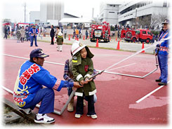 ちびっ子消防隊(放水体験) 去る11月14日の日曜日、天候にも恵まれたくさんの市民が来場され、無事「YOU・遊:消防フェスタ2010」を終えることができました。