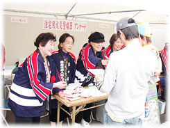 消防局以外にも陸上自衛隊国分駐屯地・第十管区海上保安本部鹿児島航空基地・住宅用火災警報器の業者・アマチュア無線関係業者・消防ポンプメーカー・医療器具メーカー展示などの資器材展示や訓練展示、さらに日本赤十字の「炊き出し訓練」、婦人防火協力会員による「住宅用火災警報器」の普及活動や様々な関係機関のご協力をいただき、事故なく終了することが出来ました。