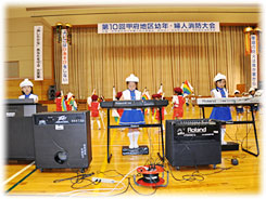 甲府地区幼少年婦人防火委員会では、秋の火災予防運動の一環として11月11日(木)に管内(甲府市・甲斐市・中央市・昭和町)の幼年消防クラブ員1,395名と女性防火クラブ、父兄、その他、消防関係者など合わせて約1,900名が参加して「第10回甲府地区幼年・婦人消防大会」を甲府市総合市民会館「山の都アリーナ」で開催しました。