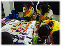 今回の研修では、小学校周辺の地図をもとに防災マップの作成を行いました。