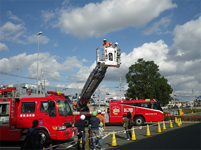 はしご車搭乗体験と消防車両展示