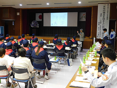 記念講演では(公財) 市民防災研究所理事として市民の立場から防災普及活動を積極的に行っている池上三喜子氏による「女性の視点を踏まえた防災・減災対策」と題して、