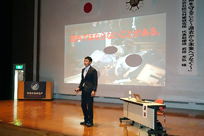 研修では、DRT JAPAN YAMAGATA(技術系ボランティア団体)代表の我妻清和様を講師に招き『命を守る備え』と題して講演をいただきました。参加者は「自分の命は自分で守る」、「共助」などについて講演をいただき、真剣に聞き入っていました。住宅用火災警報器についても講話され住宅用火災警報器の重要性について、再認識されたようです。講演の最後には『災害に負けない地域創りのため、今こそ本気で向き合うべき』という言葉に、参加者全員が感銘を受けた講演でした。