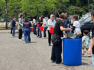 また、炊き出し訓練を行い、「一度に数十人規模の料理をする機会がないため、とても貴重な体験をすることができた。」との感想が聞かれ、有意義な研修会となりました。