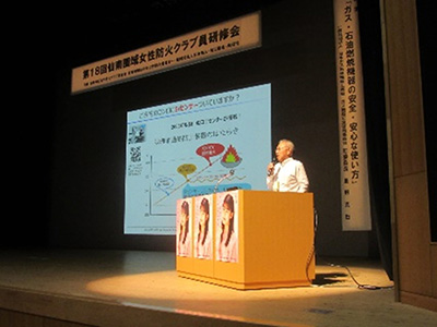 仙南地区女性防火クラブ連合会の構成市町の女性防火クラブ会長をはじめとするクラブ員約300名が参加し、(一社)日本ガス石油機器工業会より講師を招き「ガス・石油燃焼機器の安全・安心な使い方」をテーマに講演を頂きました。特にガスコンロの火災・事故の原因等の説明を受け、その対策についても詳しく話があり、理解が深まりました。