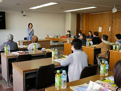 講座は、小樽市女性防火クラブ連絡協議会のクラブ員研修として行われ、風呂敷の文化や歴史、基本的な結び方などの講演をいただきました。