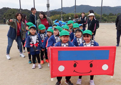 ちびっこ消防士防火運動会は、今回の開催で37回を数え、市内のこども園・幼稚園・保育園の年間行事として定着しており、地元のケーブルテレビ等の報道機関に取材され、市民への防火広報にもつながっています。