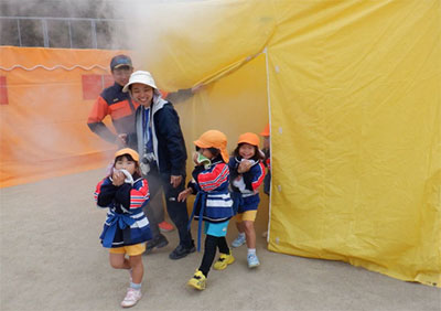 こども達に好評で、「楽しかった」「煙の中は真っ白で何も見えなかった」「水をもう一回出してみたい」「玉入れが楽しかった」といった感想がありました。